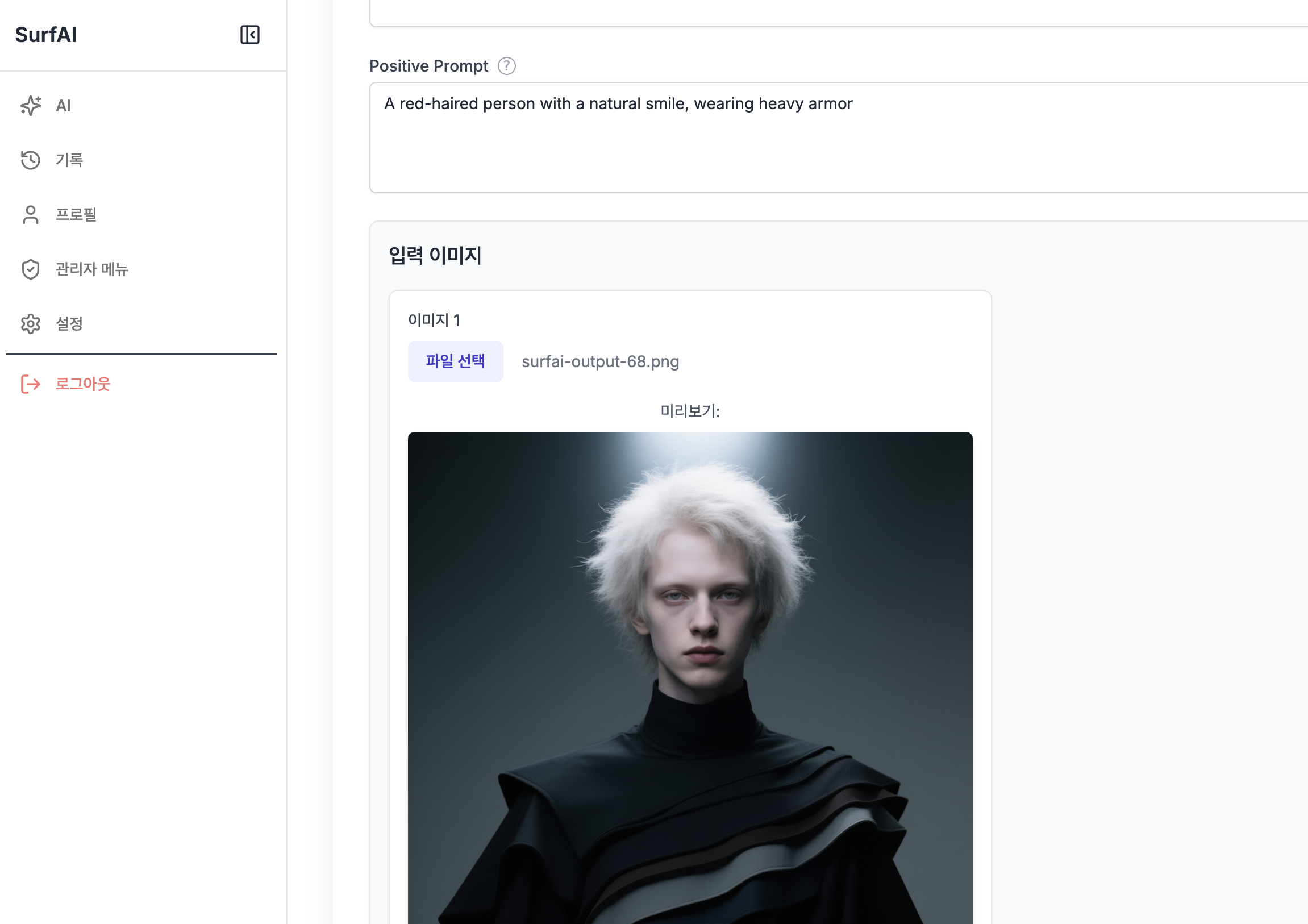 입력 이미지로 하얀 머리의 남자 사진을 넣었다.